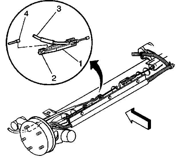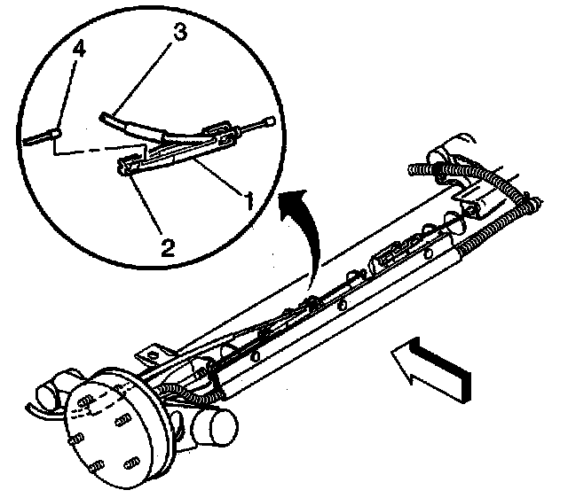 10. Remove the cable conduit end fitting (2) from the lever assembly (1).