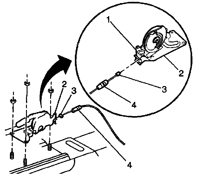 11. Pull the cable (3) until the notch on the ratchet (1) is visible through the cover plate opening (4).