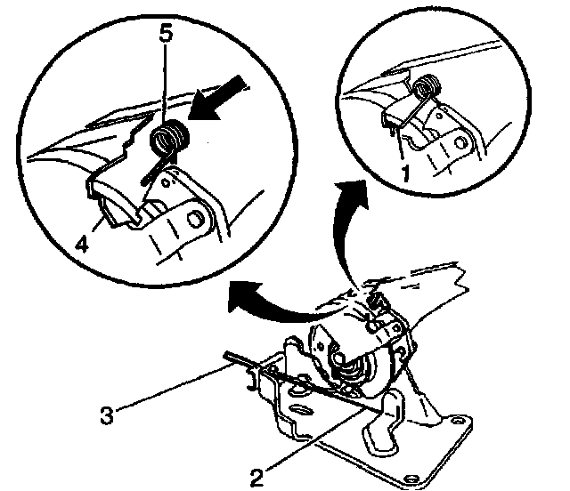 13. Release the cable (3) slowly in order to allow the notch to catch the leg of the spring (5).
