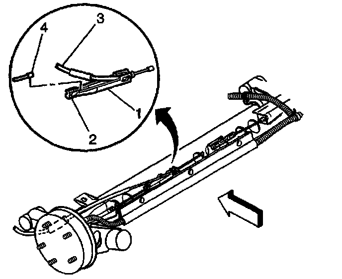 8. Remove the cable conduit end fitting (2) from the handle assembly (1).