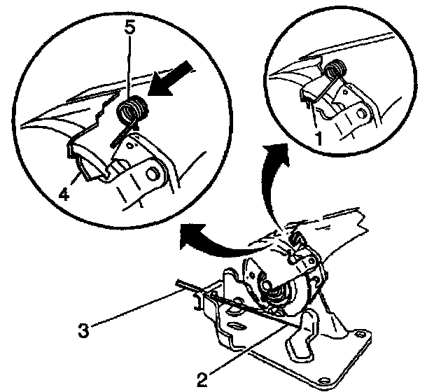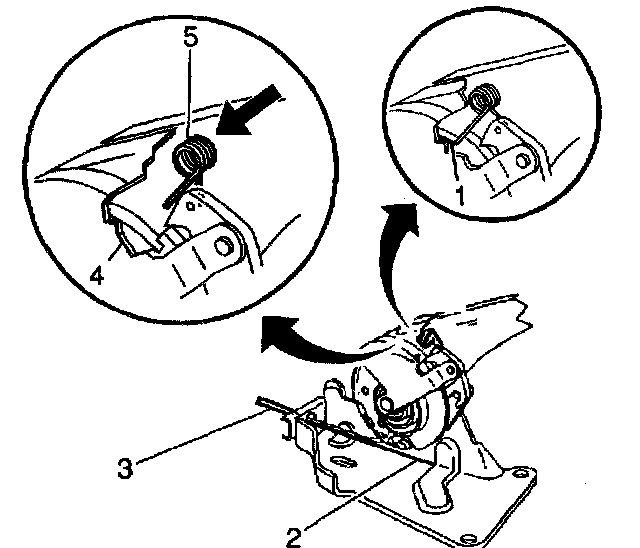 ^ Release the cable slowly to allow the notch to catch the leg of the spring (5).