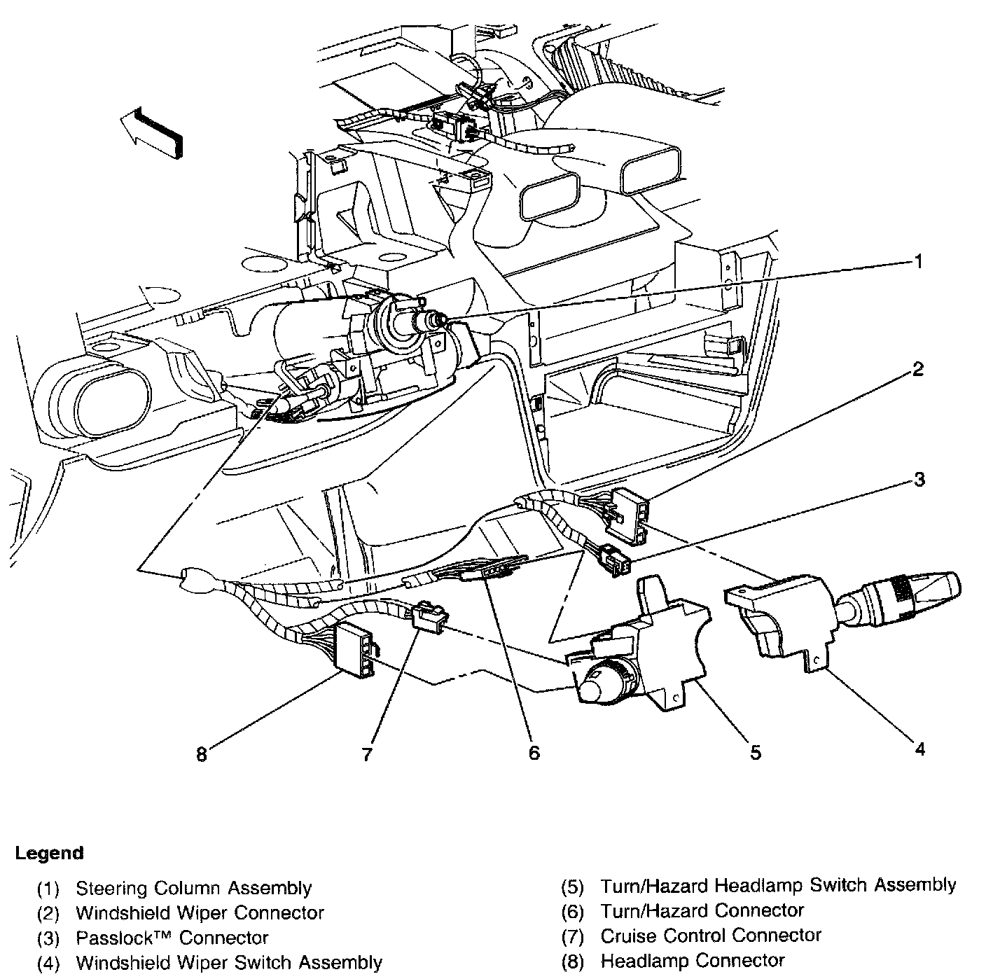 Windshield Wiper, Passlock TM, Turn/Hazard, Cruise Control And Headlamp Connectors:
