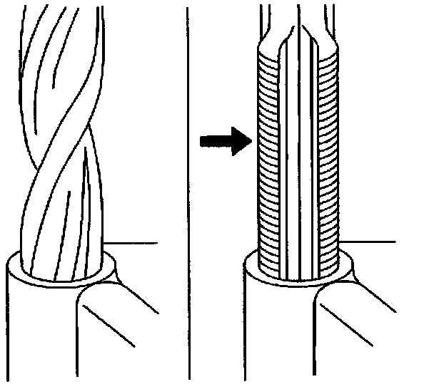 4. Tap the hole. Lubricate the tap with light engine oil. Clean the thread.