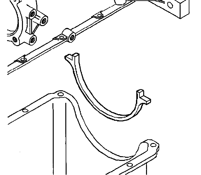 2. Using a new oil pan rear seal, apply a thin coat of GM P/N 12346286 Loctite 5900 or equivalent on the ends down to the ears.