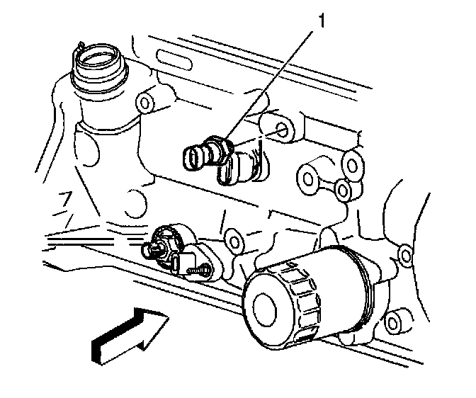 3. Remove the engine oil pressure sensor (1) using J 35749.