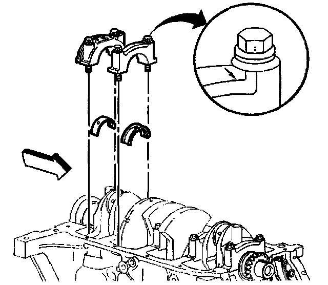 7. Install the crankshaft bearing cap bolts to the engine block.
