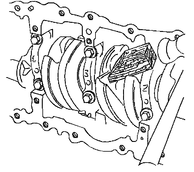 5. Install the lower crankshaft bearing inserts to the crankshaft bearing caps.