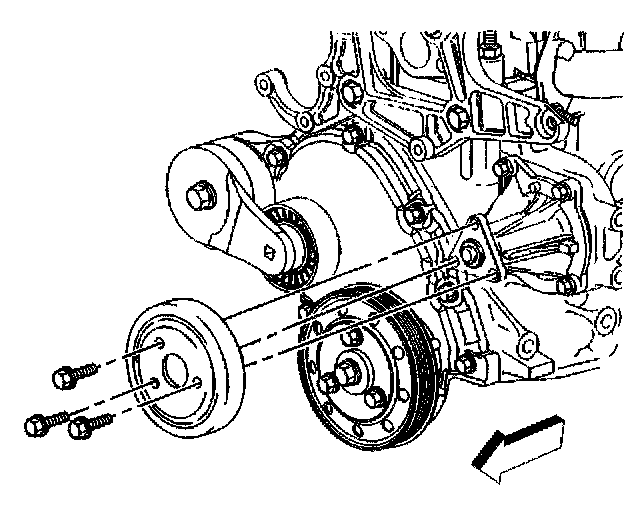 3. Loosen the attaching bolts of the coolant pump pulley.