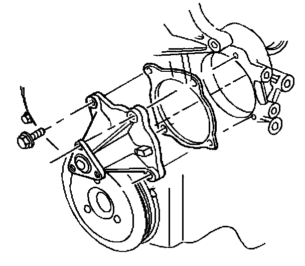 1. Using a new gasket, install the coolant pump and the attaching bolts. Coat the bolt threads with pipe sealant GM P/N 12346004, or equivalent.