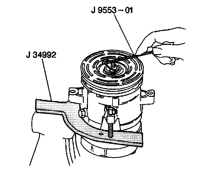 8. Remove the seal O-ring from the compressor neck using the J 9553-01. Discard the seal O-ring.