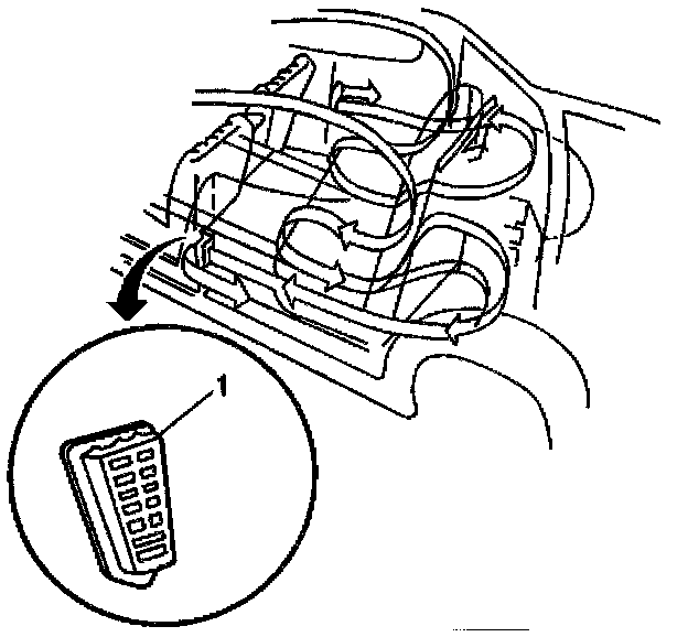 This vehicle has a flow-through ventilation system. A supply of outside air flows into the vehicle when the blower motor runs. While the side windows are closed, some air will follow the following path:1. Into the cowl air inlet grille