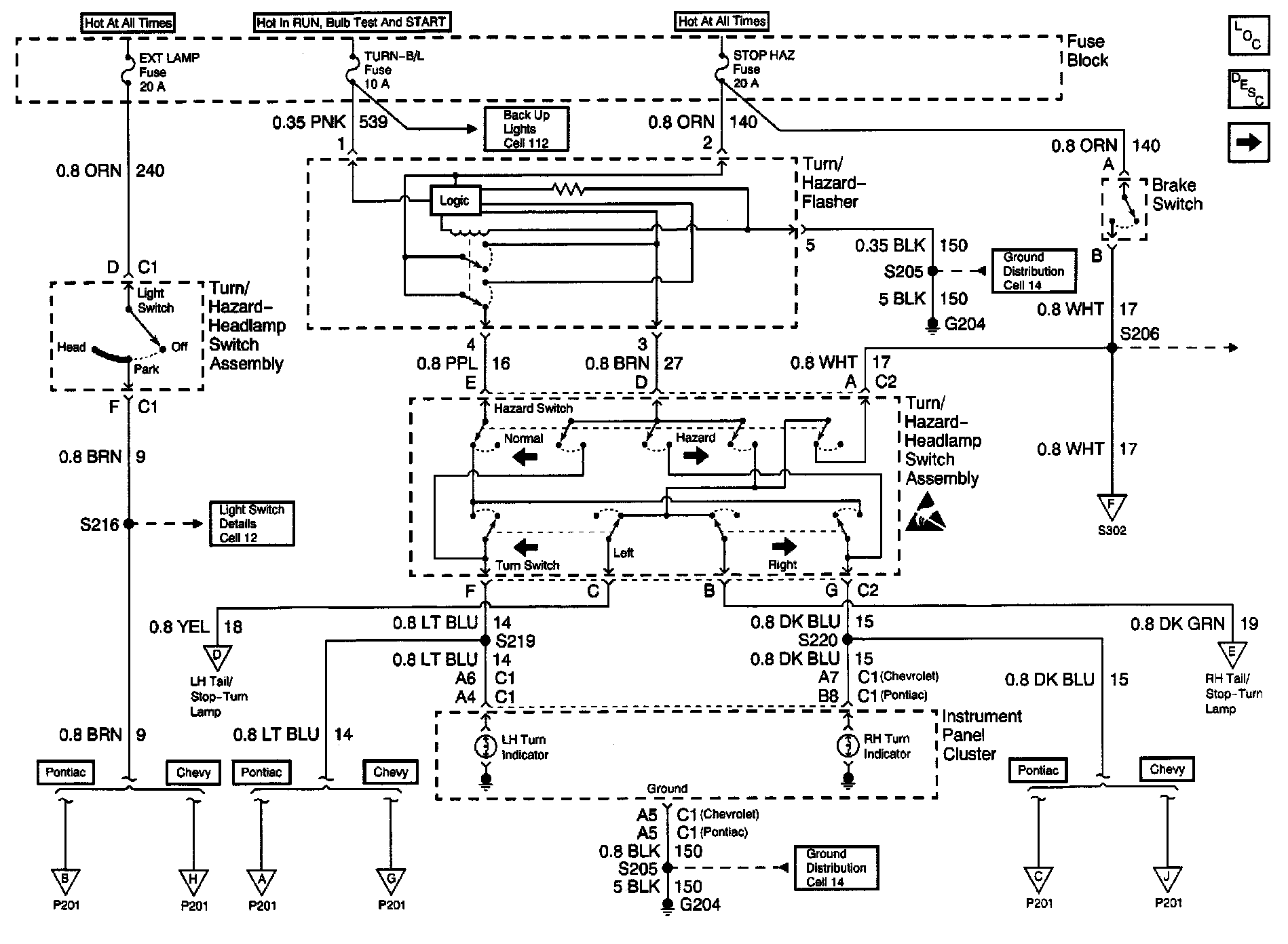 Exterior Lights Schematics: Turn, Hazard, Headlamp Switch Assembly: