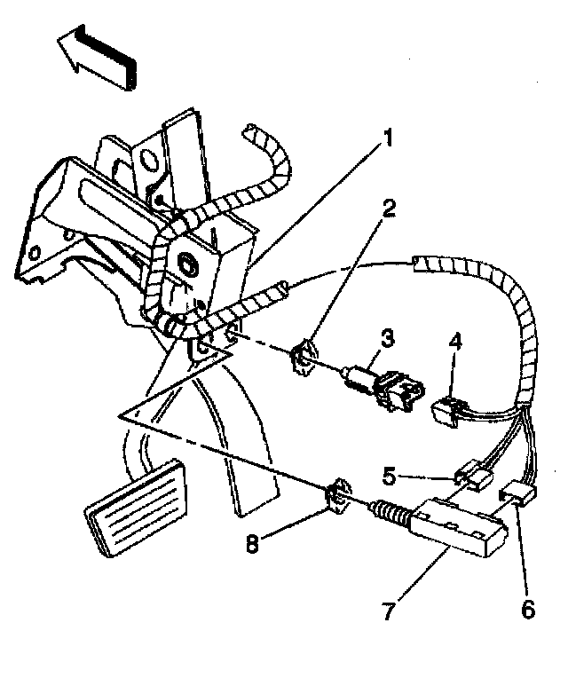 3. Disconnect the brake switch (3) by grasping the switch and turning it 90 degrees counter clockwise while pulling toward the rear of the vehicle.