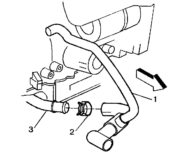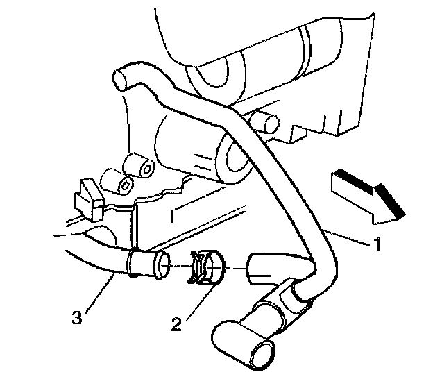 6. Disconnect the radiator outlet hose (1) from the radiator outlet pipe (3).