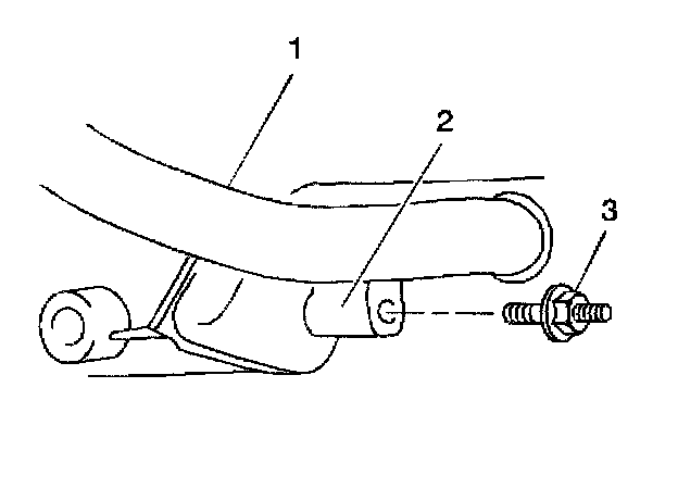 7. Remove the radiator outlet pipe (1) to the oil pan (2) bolt (3).