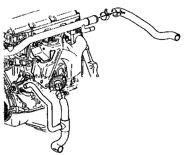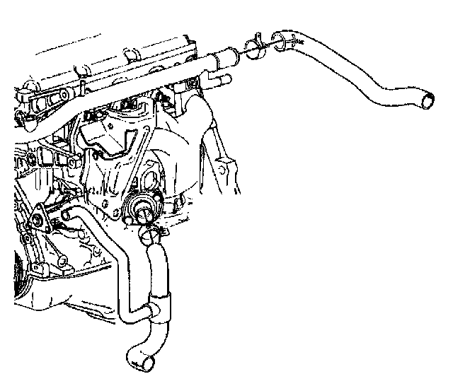 3. Remove the radiator inlet hose and the clamps from the radiator and the coolant outlet.