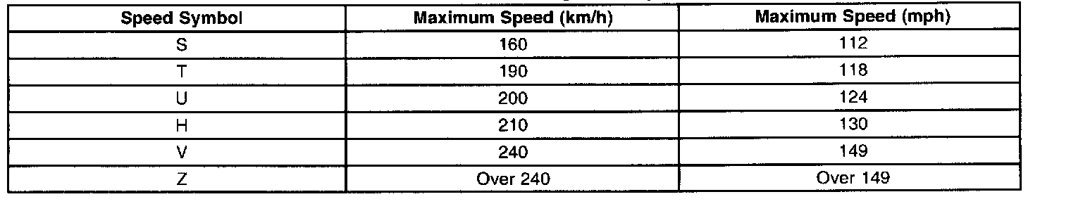 Important: These speeds apply only at the tires full air pressure. An underinflated tire will not meet its speed retina capability.