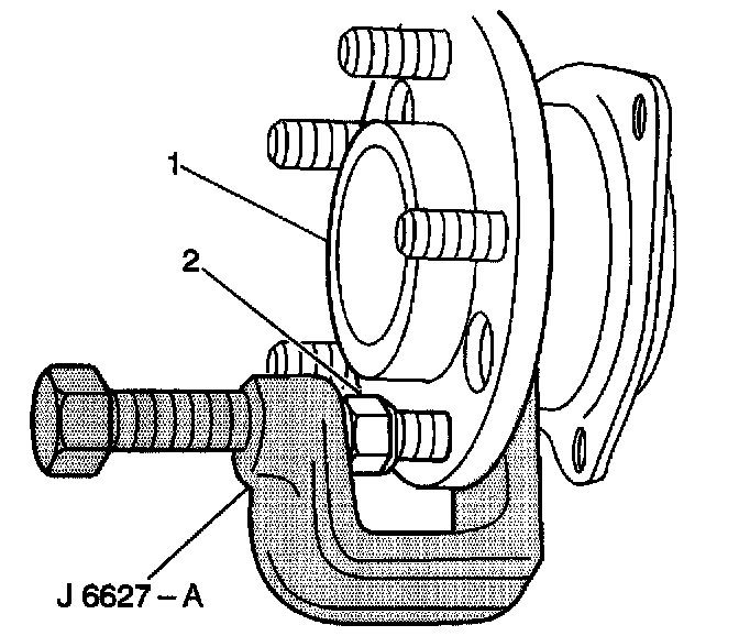 4. Tighten the nut (2) until the stud is properly seated in the hub flange.