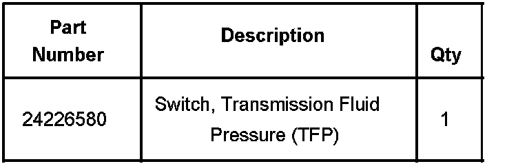 The cause may be the transmission fluid pressure (TFP) switch (also known as the pressure switch manifold (PSM)). It will be referred to as the TFP switch in this bulletin.