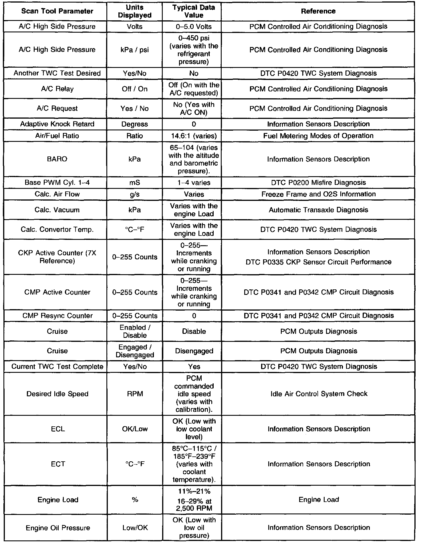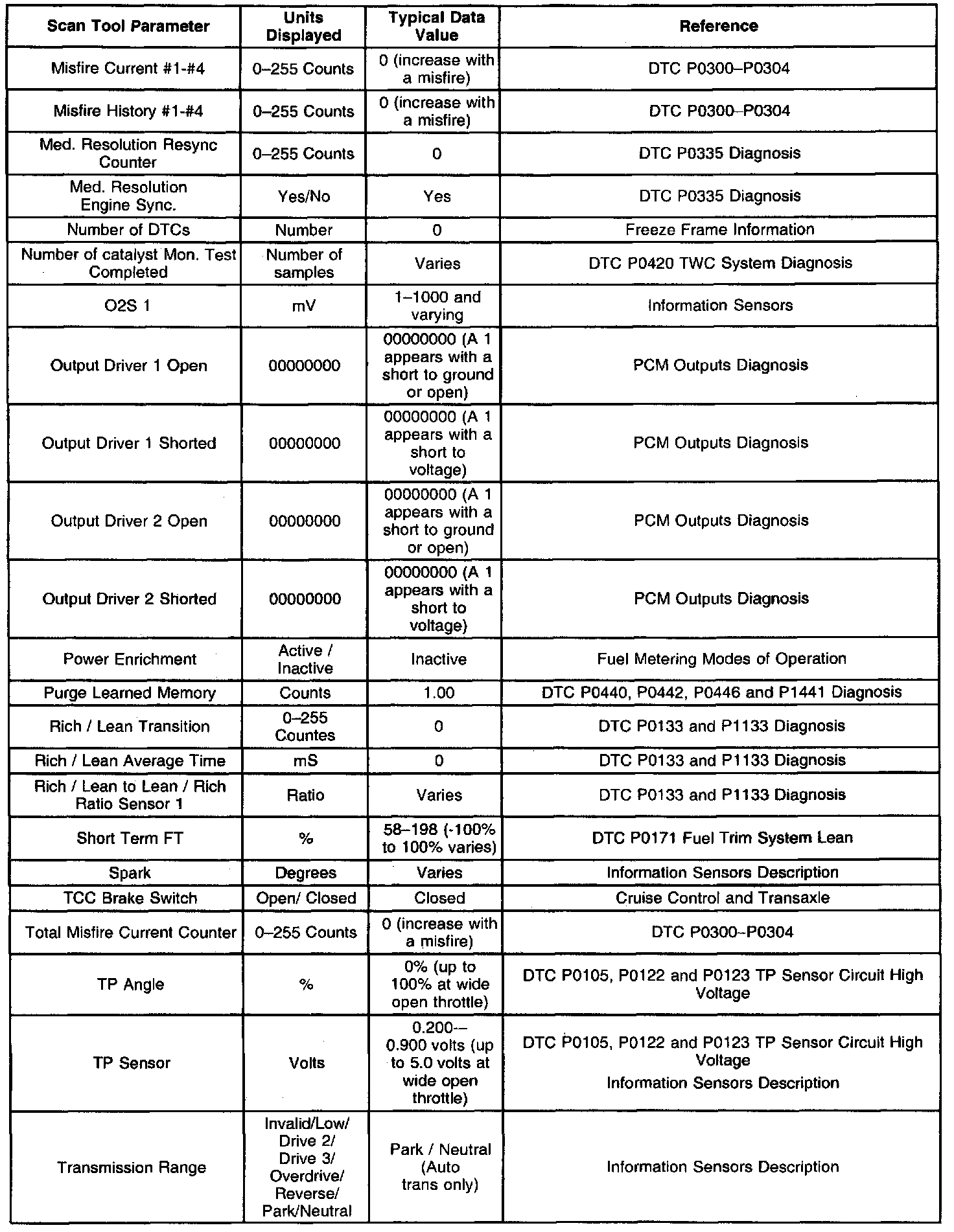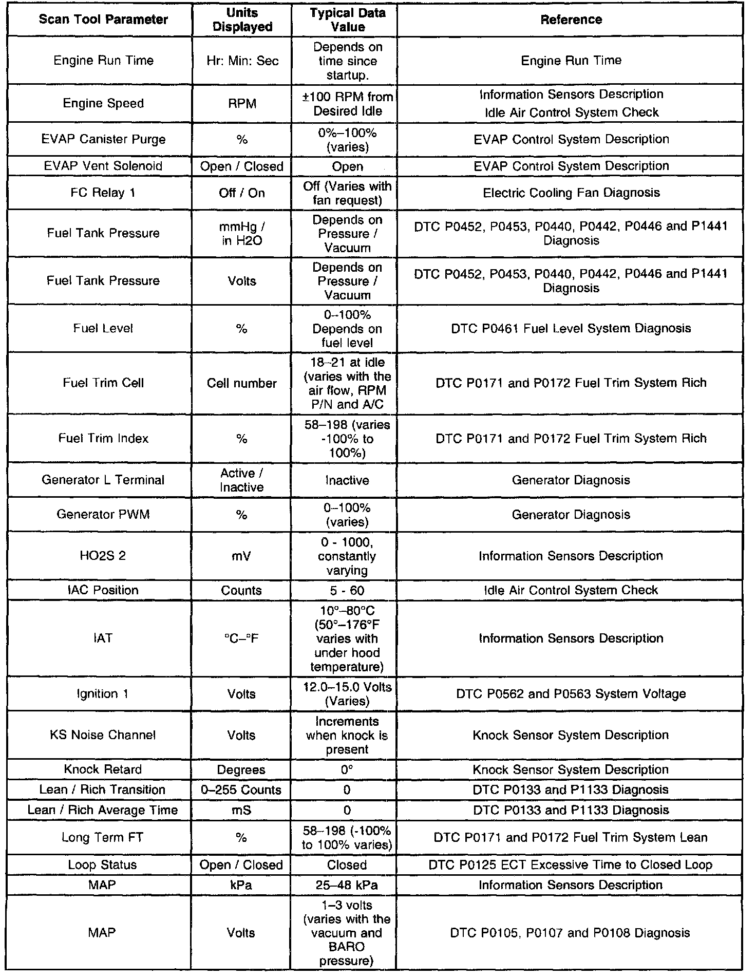 Typical Scan Tool Data Values (Part 1 Of 4):