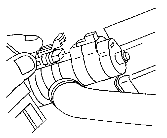 7. Slide the [1][2]EVAP vent solenoid valve hose clamp down on to the hose connection at the EVAP Vent solenoid valve.