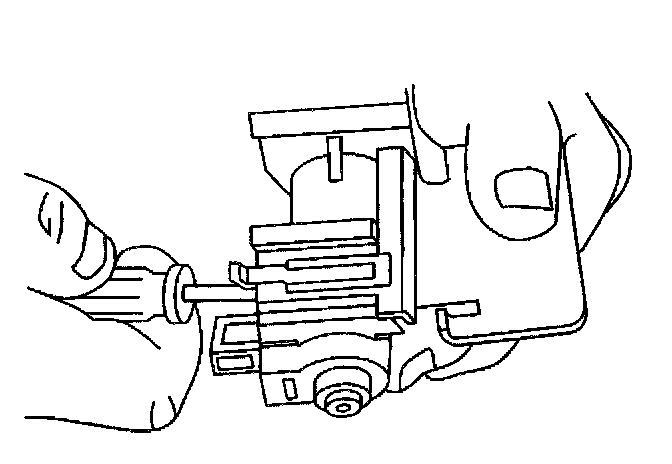 7. Insert a screwdriver between the EVAP vent valve and the mounting bracket to release the lock tab.
