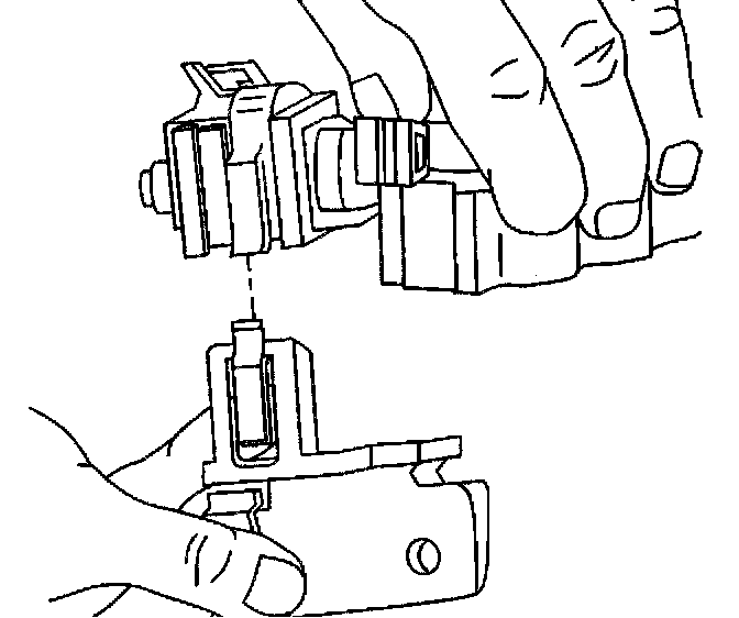 1. Slide the vent solenoid onto the mounting bracket. Making sure that the locking tab locks the [1][2]EVAP vent solenoid valve into place.
