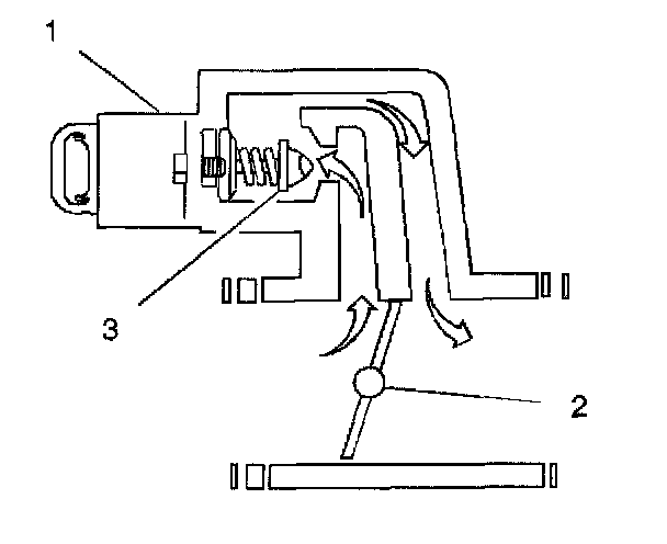Engine idle speed is controlled by the PCM through the IAC valve (1) mounted on the throttle body. The PCM sends voltage pulses to the IAC valve motor windings causing the IAC valve pintle (3) to move IN (toward the seat) or OUT (away from the seat) a given distance (a step or count) for each pulse. The commanded location (steps away from the seated position) can be observed as a number of counts displayed on a scan tool. The pintle movement controls the airflow around the throttle valve (2), which in turn, controls engine idle speed: Pintle Extended=Decrease RPM = Lower Counts. Pintle Retracted = increase RPM = Higher Counts.