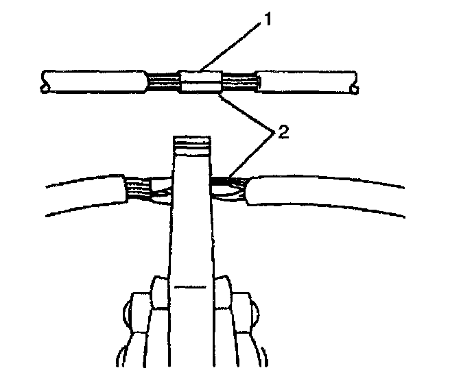 ^ Ensure that each splice is at least 40 mm (1.5 in) away from other splices, harness branches and connectors. This helps prevent moisture from bridging adjacent splices and causing damage.