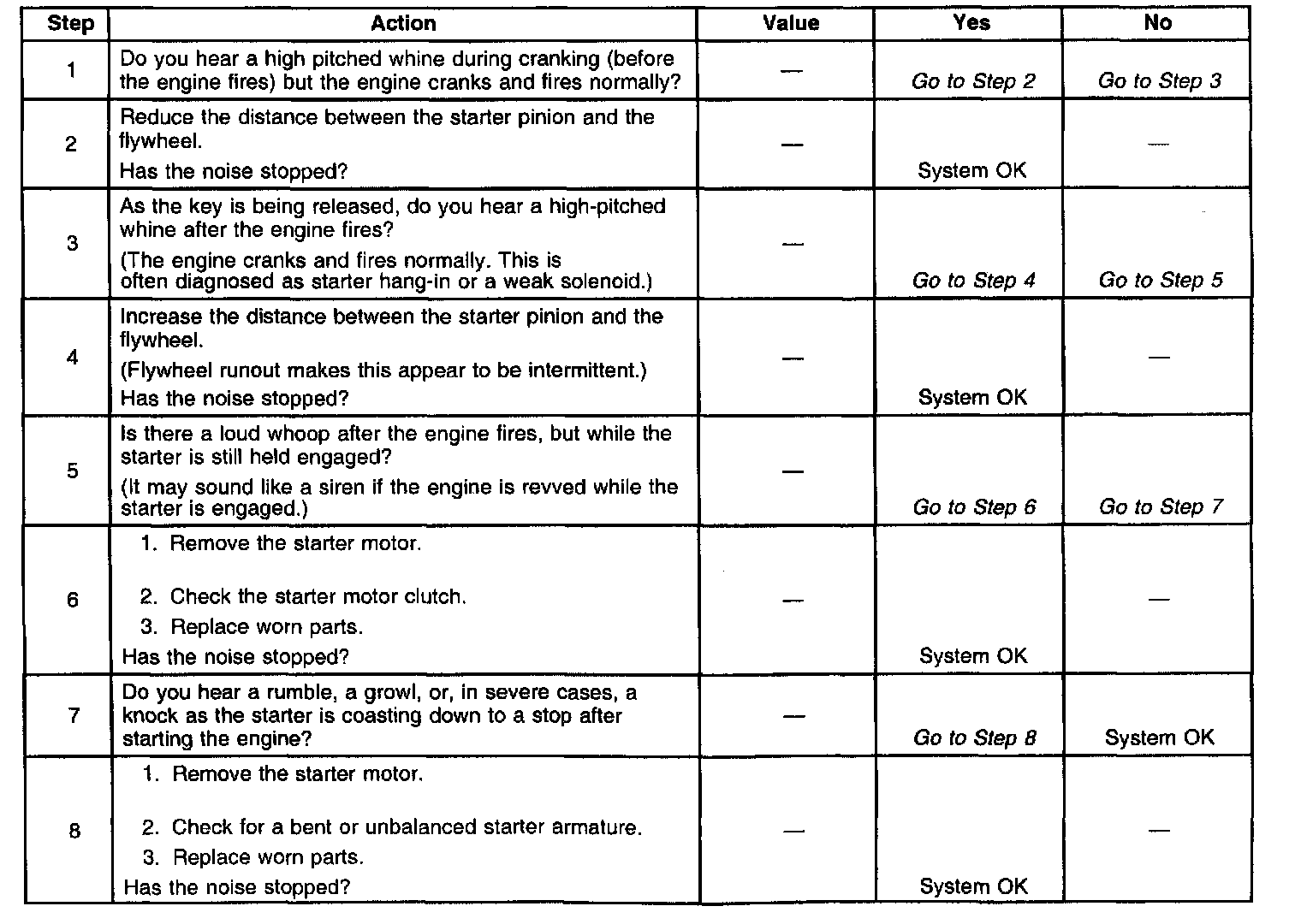 4. Start noise during cranking: remove 1 - 0.015 inch double shim or add a single 0.015 inch shim to the outer bolt.