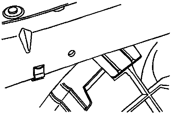 8. Remove the J-nut and using a 6.35 mm (1/4 in) drill bit, drill a hole in the radiator support at the location marked (2) in the previous step. The above illustration shows the radiator support after the hole has been drilled.