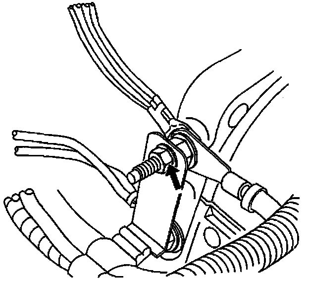 ^ If the nut and/or stud appear to be corroded to the point where the stud may break off if removal of the nut is attempted, proceed to Step 21 of this procedure. Steps 21-27 will require the use of one ADDITIONAL butt connector, P/N 12089191. Obtain the additional butt connector before proceeding.
