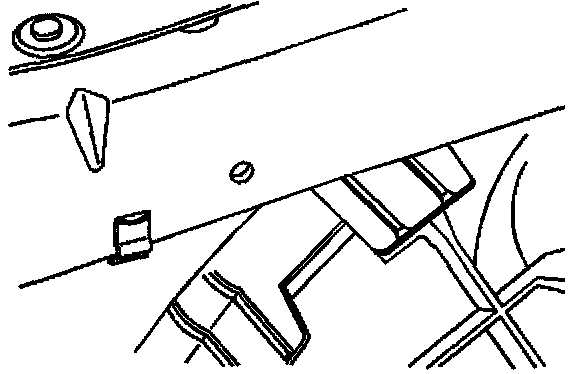 3. Remove the J-nut and using a 6.35 mm (1/4 in) drill bit, drill a hole in the radiator support at the location marked (2) in the previous step. The above illustration shows the radiator support after the hole has been drilled.