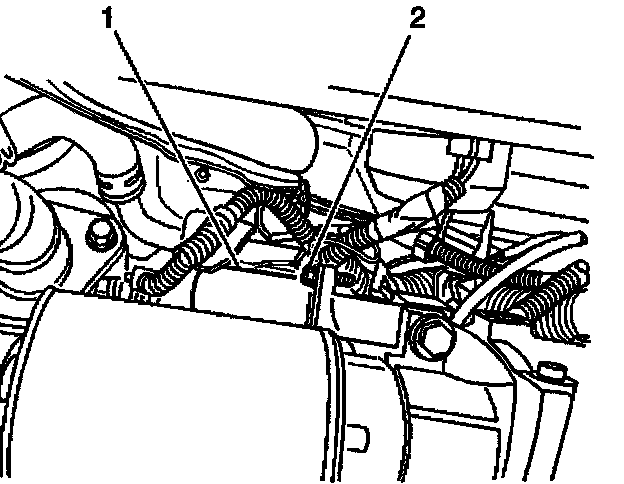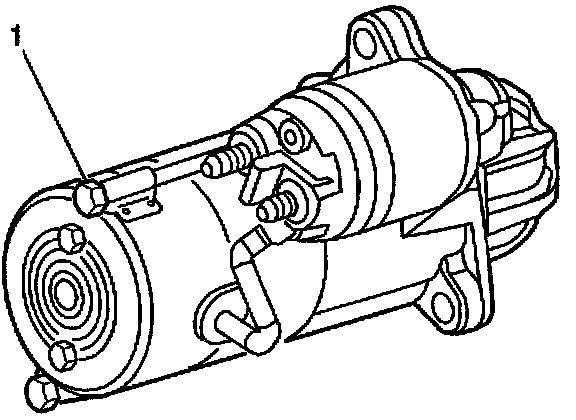 30. On 1998 models, remove one of the bolts (2) that attach the starter solenoid to the starter motor. On 1999-2001 models, remove one of the long bolts (1) that hold the starter motor end cap to the housing.