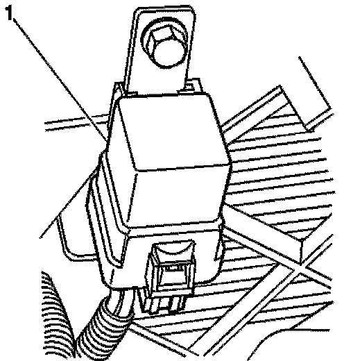 13. Using the 10 mm hex head bolt provided in the harness kit, attach the relay (1) to the radiator support using the previously drilled hole and J-nut.