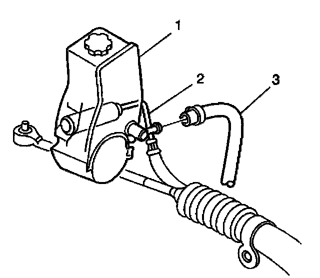 4. Remove the power steering pressure hose (1) from the power steering gear (3).