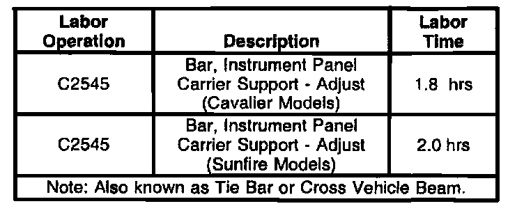 The tie bar under the instrument panel may not be correctly aligned to the body sheet metal. The tie bar may also be referred to as the instrument panel carrier support bar or cross vehicle beam.