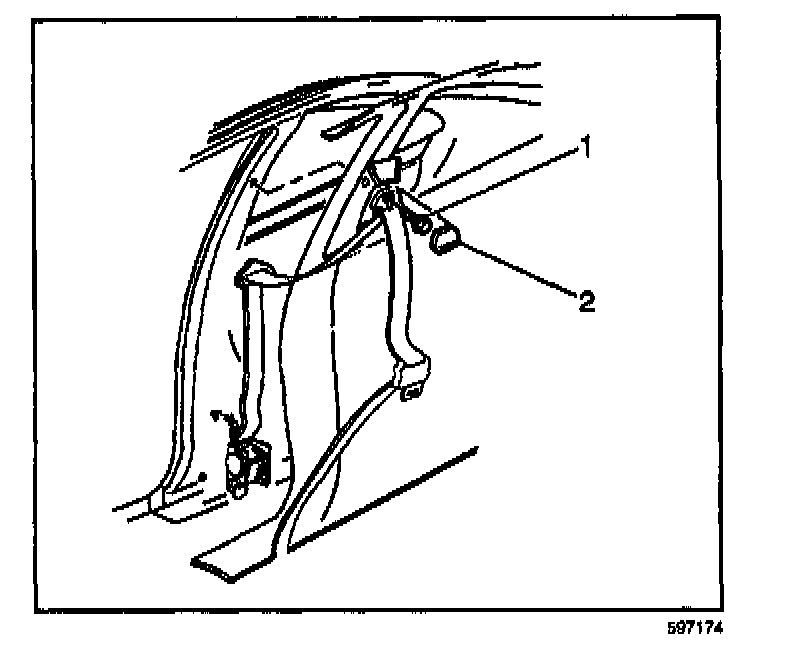 3. Install the new shoulder belt to the pillar attaching bolt (1) and tighten to 42 N.m (31 lb ft).