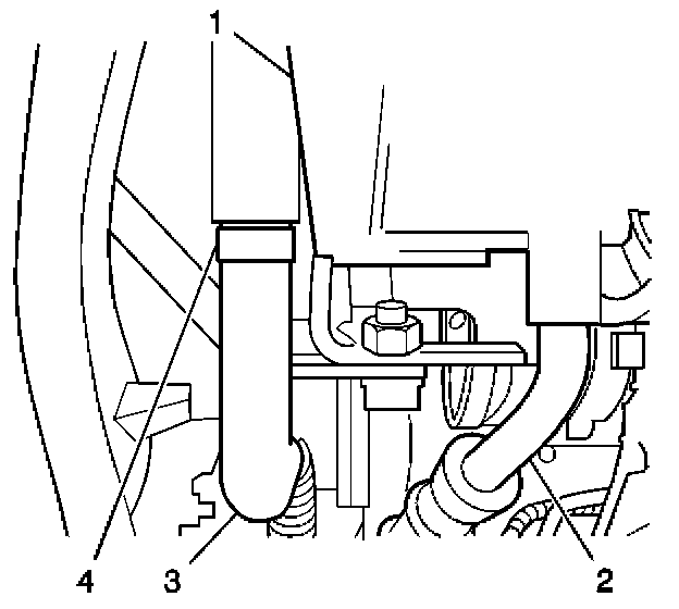 16. Install the new power steering return hose (4) P/N 22717000 to the vehicle.