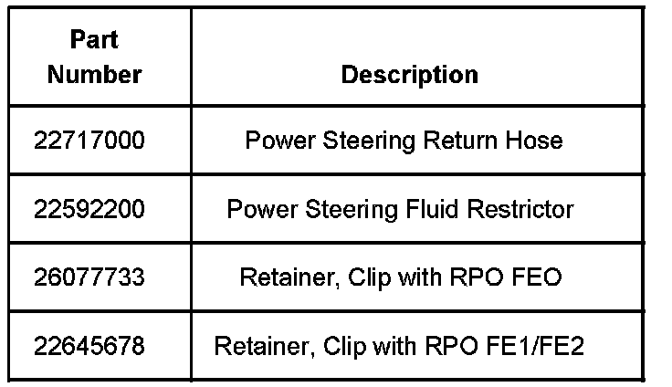 Follow the service procedure below and replace the power steering return line and install a fluid restrictor and retaining clips, if necessary.