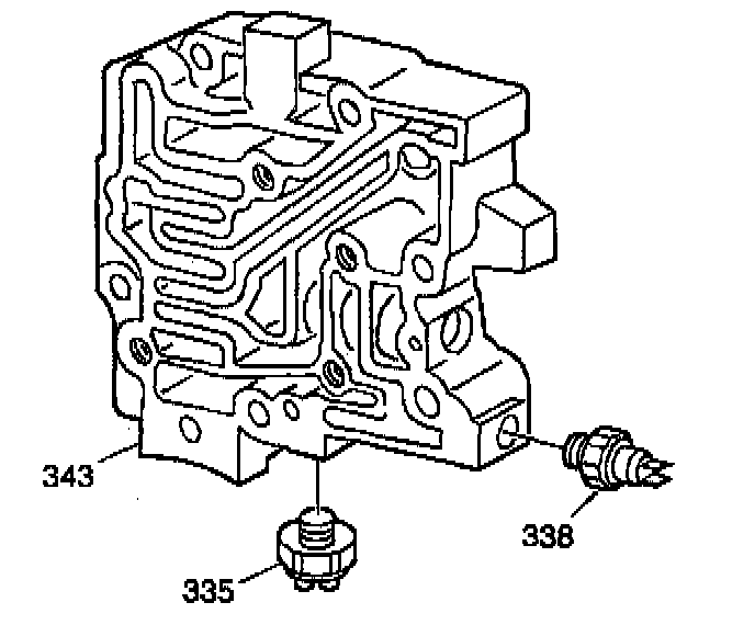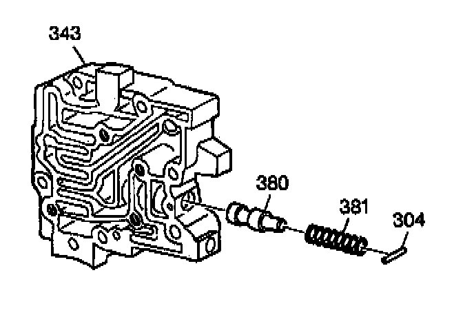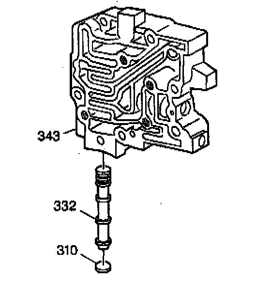 4. Insert the converter clutch control valve (332) and the valve bore plug (310).