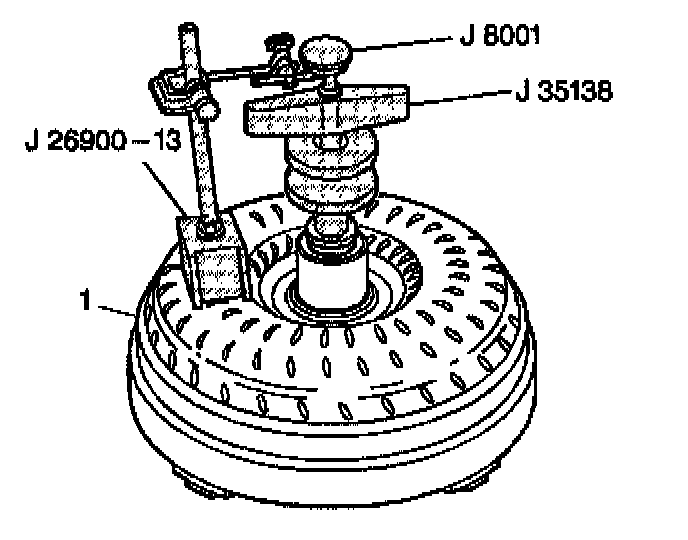 2. Install J 26900-13, J 35138, and J 8001 onto the converter.
