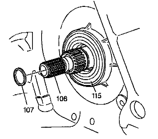 1. Apply J 36850 (or equivalent) to a new oil seal ring (107) on the turbine shaft.