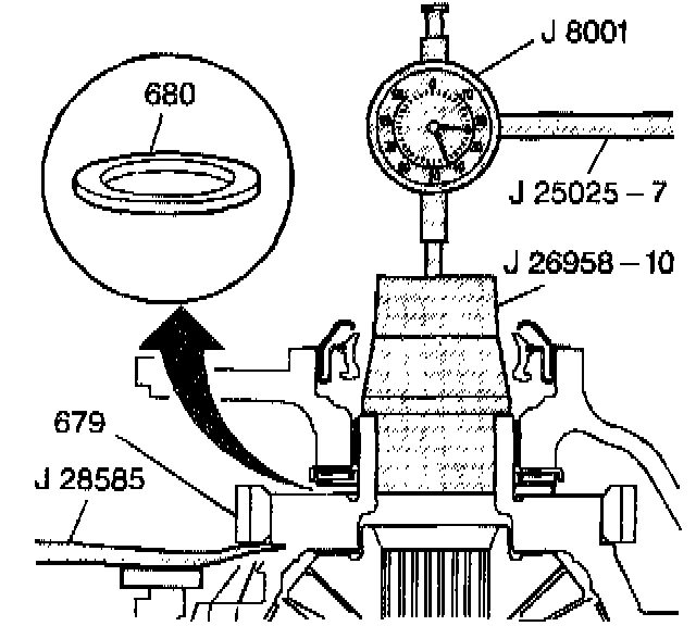 8. In order to select the correct final drive thrust washer (680), refer to the Selective Thrust Washer table in End Play Specifications under Transmission Specifications. End Play Specifications
