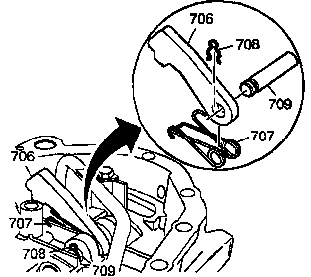 Remove the pin retainer (708) from the park lock pawl pin (709).