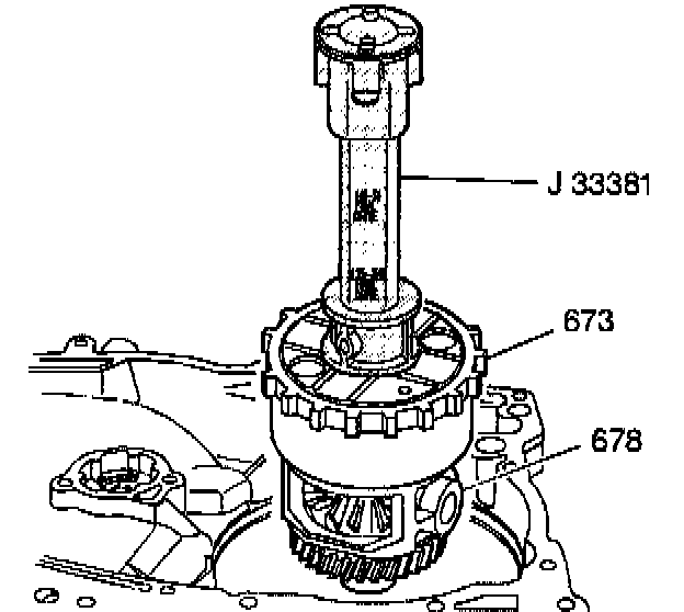 1. Remove J 33381-A from the differential carrier (673) and final drive assembly (678).