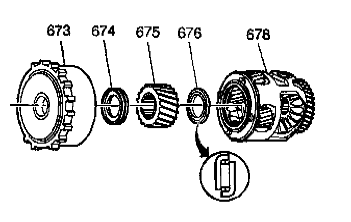3. Remove the thrust bearing (674) connecting the sun gear to the internal gear (673).