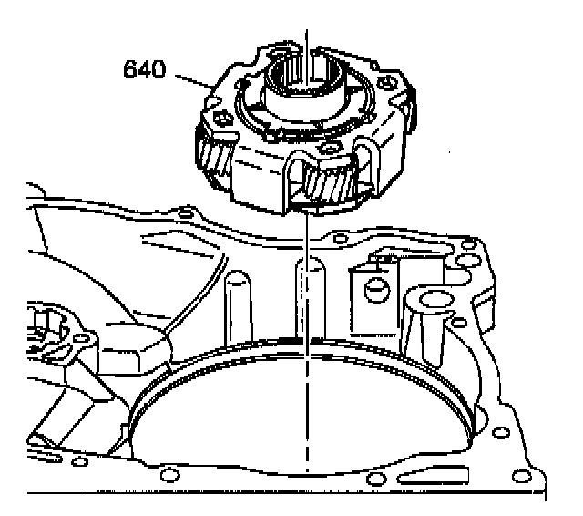 9. Install the input carrier (640) into the case. Use a slight twisting motion in order to engage the pinions into the sun gear.
