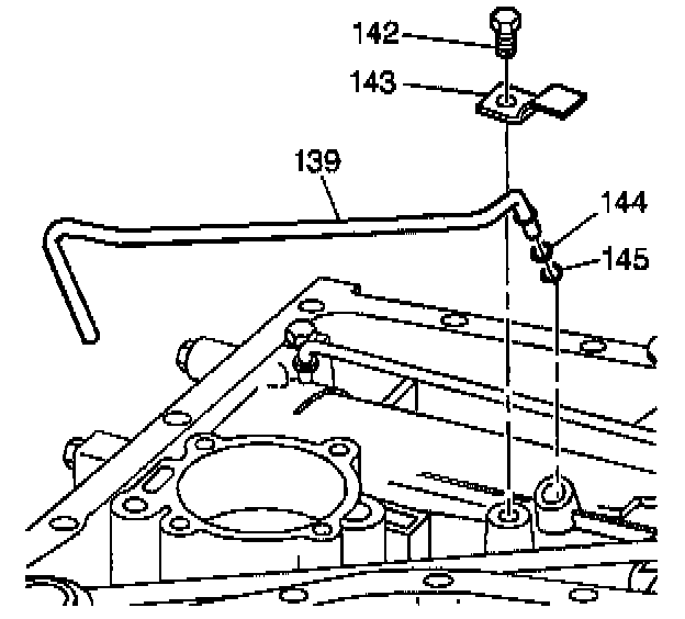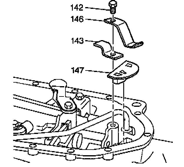 3. Remove the retainer bolt (142) from the low and reverse oil pipe retainer (143).