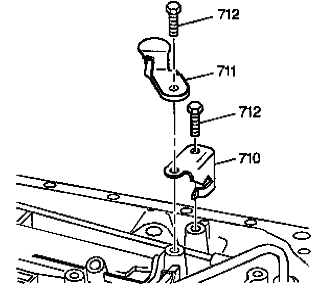 9. Remove the other bolt (712) from the parking lock bracket (710).